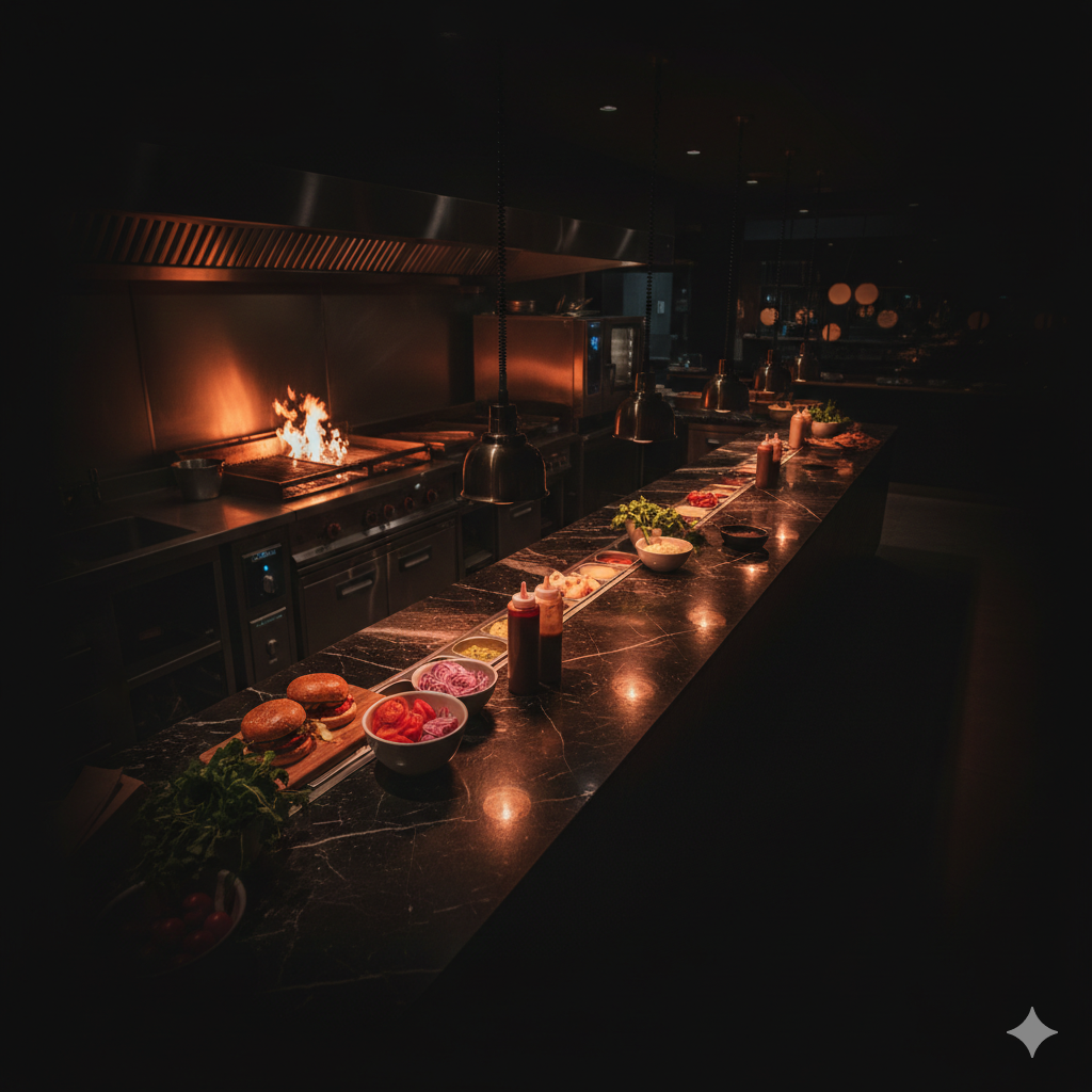 Un systeme complet qui gere vos commandes, votre cuisine, vos tables, votre stock et votre comptabilite. Tout est connecte, tout est automatise. نظام متكامل يدير الطلبات، المطبخ، الطاولات، المخزون والمحاسبة. كل شيء مربوط، كل شيء أوتوماتيكي.